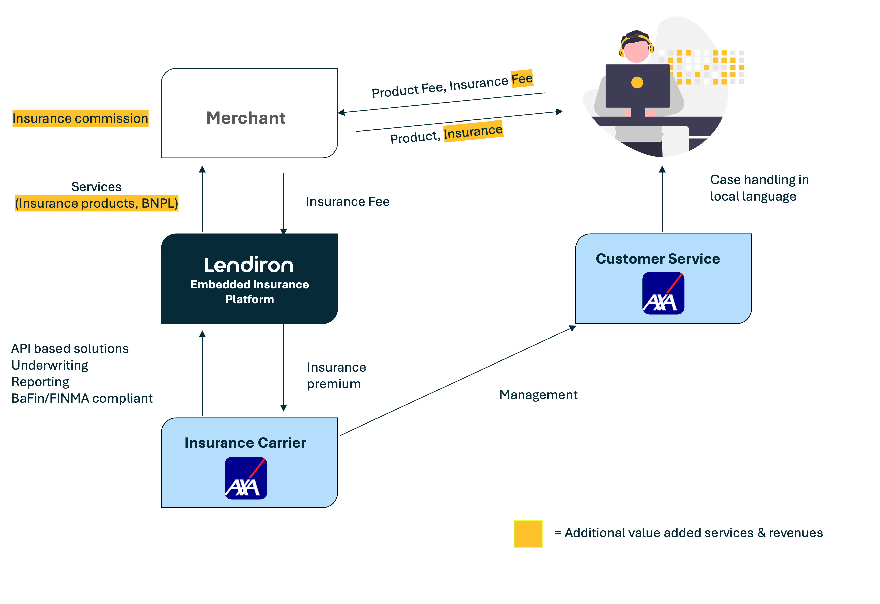 We have joint forces and offer merchant's an extra revenue opportunity. We pay merchants 0.15 euros from every 1 euro paid of the insurance premiums.